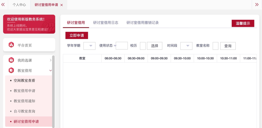 微人大微人大-个人中心-教室借用-研讨室借用申请