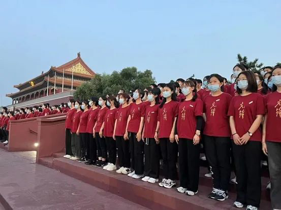 当天边缓缓升起那抹中国红,嘹亮的歌声在我耳畔回响。我不禁遥想,八十五年前,陕北公学的先辈们冒着枪林弹雨,奔赴前线。而今,人大新生齐聚天安门观礼台向国旗致敬,赓续红色血脉,发出时代最强音。
